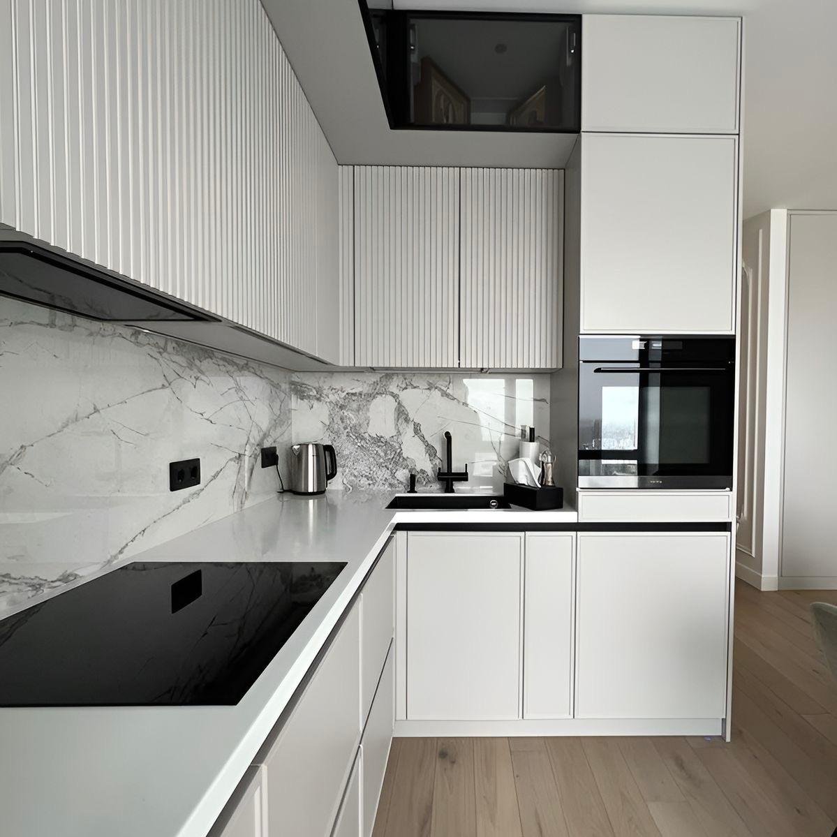 Vitrin detaylı mutfak dolabı ile mutfağınıza ferah ve modern bir görünüm kazandırın.